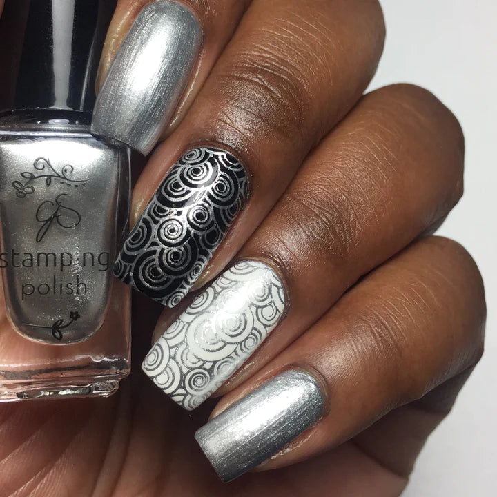 Generously pigmented silver stamping polish which is better than 2nd place... it's a show stopper!.