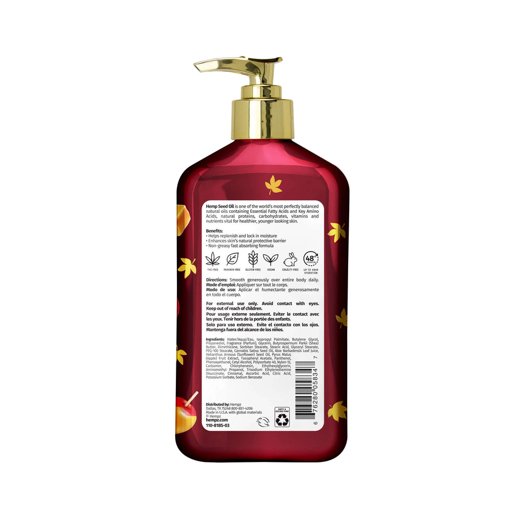 Enjoy the irresistible scent of our Caramel Candy Apple Lotion. This lightweight, quick-absorbing formula hydrates and softens skin with 100% pure hemp seed oil.