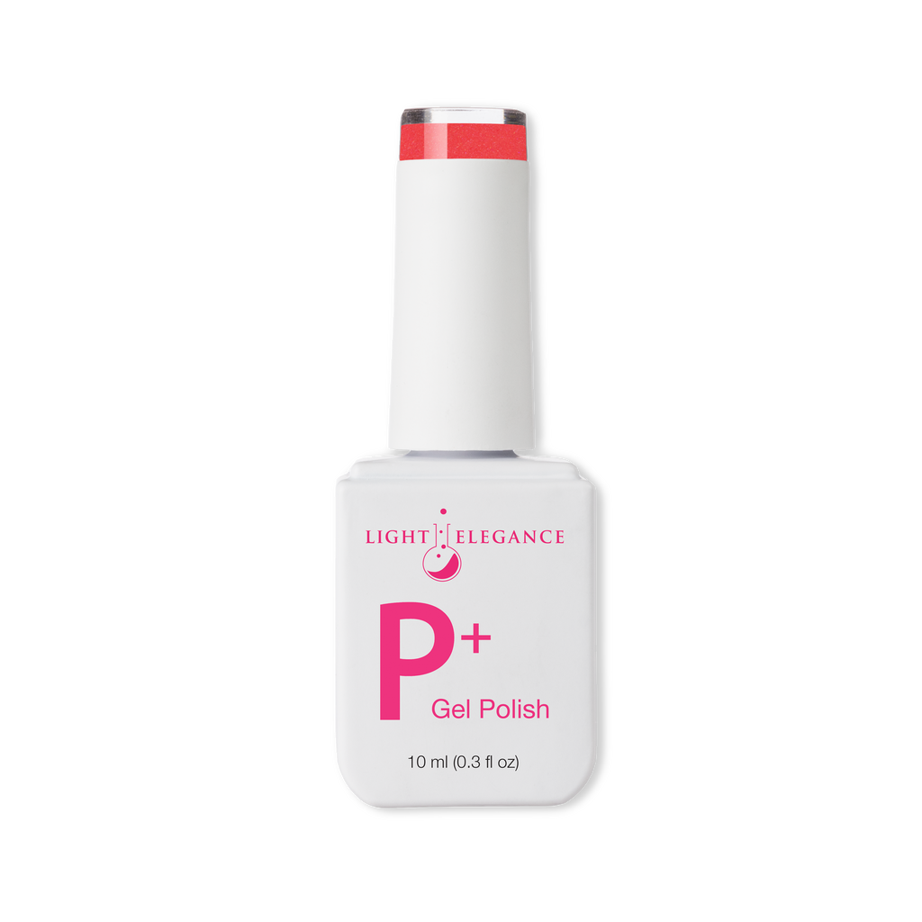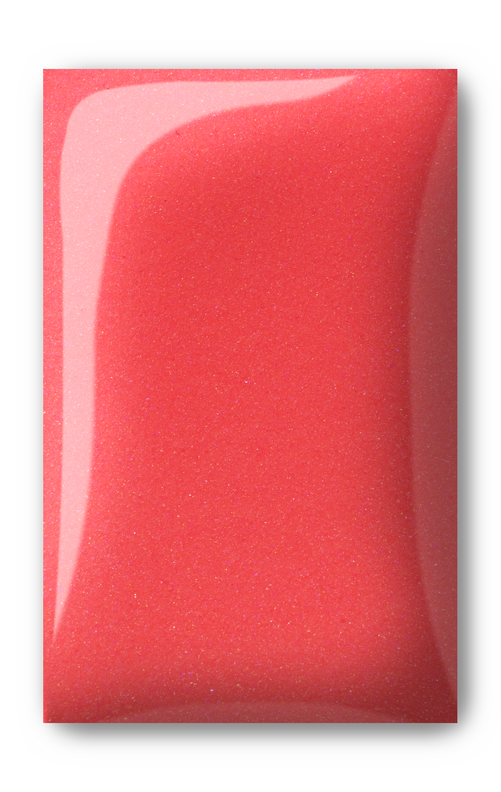 An earthy, terra-cotta coral. A smidge of pink shimmer throughout gives it just the right amount of pop.